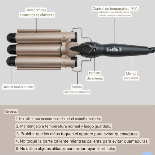 🌸 Transforma tu cabello en minutos con nuestro rizador de triple barril. Ajusta fácilmente la temperatura según las necesidades de tu cabello para lograr un peinado moderno y duradero.